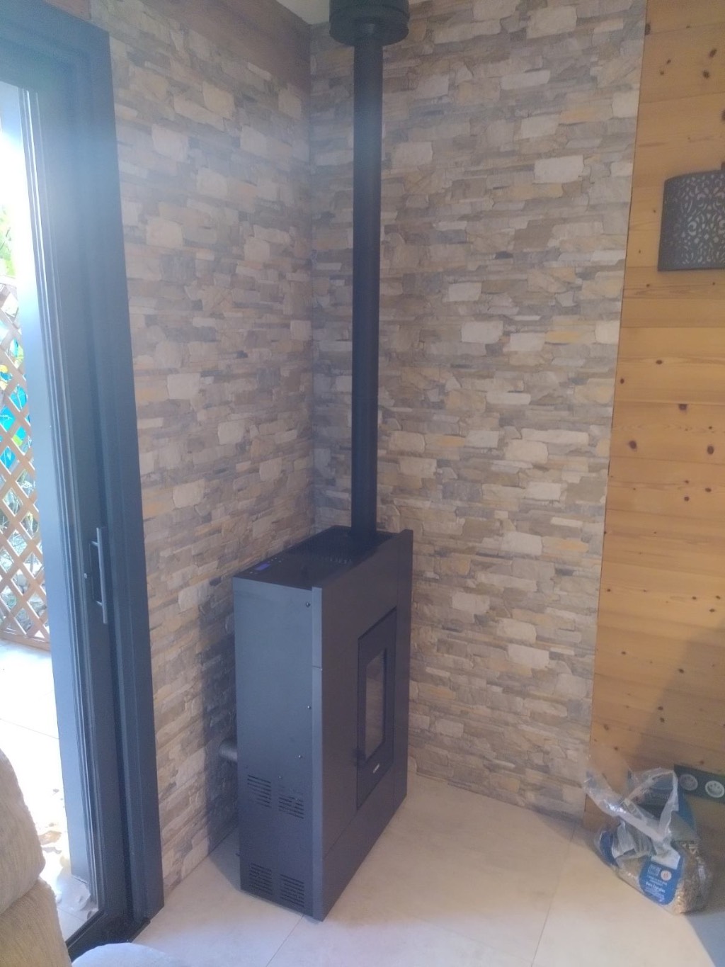 Pour maîtriser les coûts durant ces journées, le propriétaire a souhaité ajouter un poêle à granulés 🔥, une solution économique, performante et utilisant une énergie stockable 🌾.